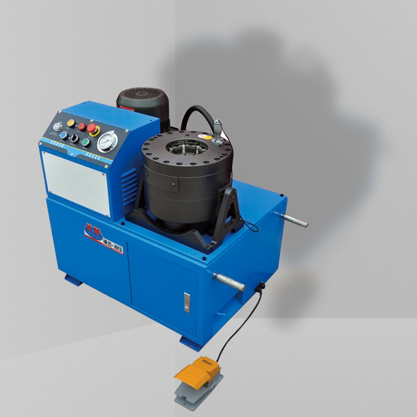 KM-91型系列縮管機,公司技術(shù)人員針對環(huán)形機加潤滑油不方便這一情況,在機頭上設(shè)計增加了自注潤滑油杯,模座上增加了油槽,模座間增加了彈性樹脂層,防止接頭上的鋅層脫落劃傷工作錐面和缸筒,考慮到現(xiàn)在扣壓時異型接頭較多這一現(xiàn)象,增加了機器的收擴量和通過能力。新型機頭支架的選用改變了機頭和支架長期焊接導致缸筒變形等一系列弊端。